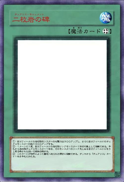 | ①:自分フィールドの岩石族モンスターの攻撃力は300アップし、さらに自分フィールドのデュアルモンスターの数×300アップする。 ②:1ターンに1度、自分フィールドの岩石族リンクモンスター1体を対象として発動できる。手札から岩石族デュアルモンスター1体を、そのモンスターのリンク先となる自分フィールドにもう1度召喚された扱いで特殊召喚する。 ③:このカードが相手によって墓地へ送られた場合に発動できる。デッキから「デュアリス」カード1枚を手札に加える。 | |||