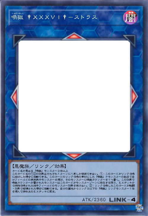 | カード名が異なる「喚獄」モンスター2体以上 このカード名の①②の効果はそれぞれ1ターンに1度しか使用できない。①:このカードがリンク召喚に成功した場合に発動できる。このカードのリンク召喚の素材とした「喚獄」Pモンスターの数まで自分フィールドの表側表示モンスターを選び、そのモンスターに喚獄カウンターを1つ置く。この効果で喚獄カウンターが置かれたモンスターはこのカードがモンスターゾーンに存在する限り、EXデッキから特殊召喚された相手フィールドのモンスター効果を受けない。②:リンク召喚したこのカードが戦闘・効果で破壊された場合に発動できる。自分の墓地からリンク3以下の「喚獄」リンクモンスター1体を選んで持ち主のEXデッキに戻す。 | |||
