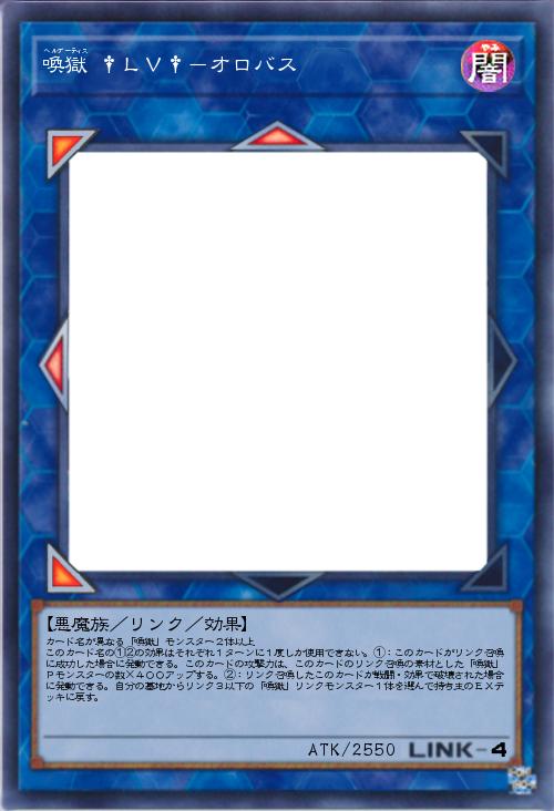 | カード名が異なる「喚獄」モンスター2体以上 このカード名の①②の効果はそれぞれ1ターンに1度しか使用できない。①:このカードがリンク召喚に成功した場合に発動できる。このカードの攻撃力は、このカードのリンク召喚の素材とした「喚獄」Pモンスターの数×400アップする。②:リンク召喚したこのカードが戦闘・効果で破壊された場合に発動できる。自分の墓地からリンク3以下の「喚獄」リンクモンスター1体を選んで持ち主のEXデッキに戻す。 | |||