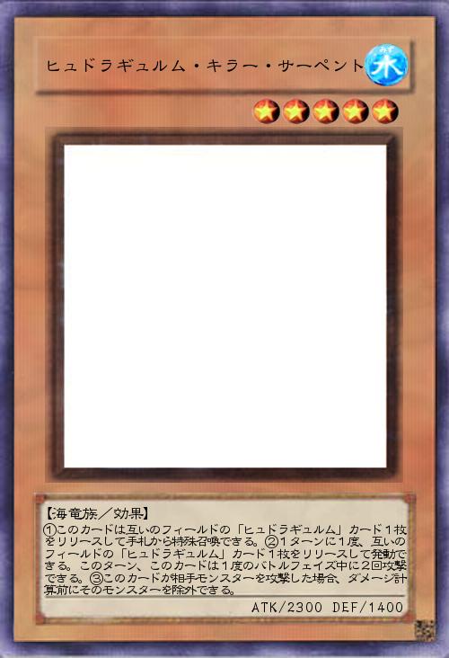| ①このカードは互いのフィールドの「ヒュドラギュルム」カード1枚をリリースして手札から特殊召喚できる。②1ターンに1度、互いのフィールドの「ヒュドラギュルム」カード1枚をリリースして発動できる。このターン、このカードは1度のバトルフェイズ中に2回攻撃できる。③このカードが相手モンスターを攻撃した場合、ダメージ計算前にそのモンスターを除外できる。 | |||