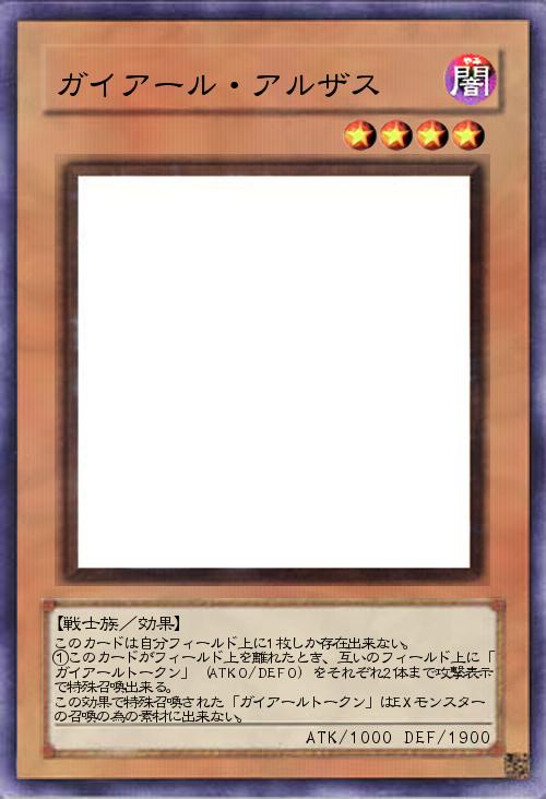 | このカードは自分フィールド上に1枚しか存在出来ない。 ①このカードがフィールド上を離れたとき、互いのフィールド上に「ガイアールトークン」(ATK0/DEF0)をそれぞれ2体まで攻撃表示で特殊召喚出来る。 この効果で特殊召喚された「ガイアールトークン」はEXモンスターの召喚の為の素材に出来ない。 | |||