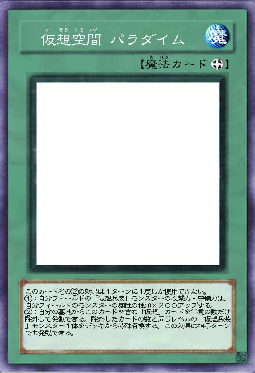 | このカード名の②の効果は1ターンに1度しか使用できない。 ①:自分フィールドの「仮想兵装」モンスターの攻撃力・守備力は、自分フィールドのモンスターの属性の種類×200アップする。 ②:自分の墓地からこのカードを含む「仮想」カードを任意の数だけ除外して発動できる。除外したカードの数と同じレベルの「仮想兵装」モンスター1体をデッキから特殊召喚する。この効果は相手ターンでも発動できる。 | |||
