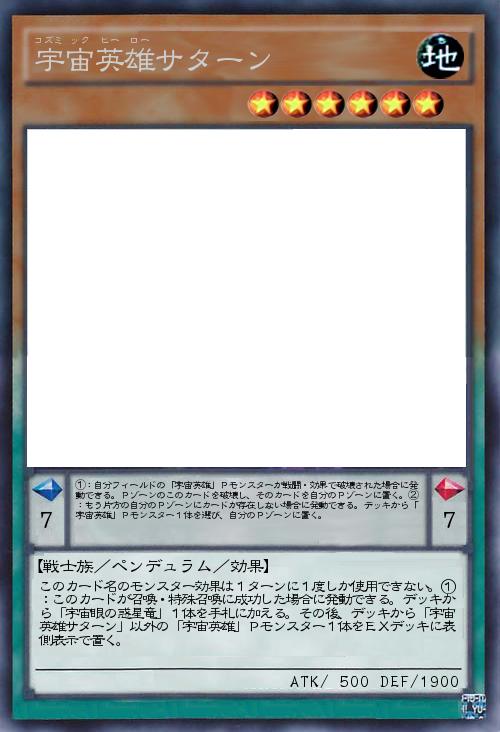 | このカード名のモンスター効果は1ターンに1度しか使用できない。①:このカードが召喚・特殊召喚に成功した場合に発動できる。デッキから「宇宙眼の惑星竜」1体を手札に加える。その後、デッキから「宇宙英雄サターン」以外の「宇宙英雄」Pモンスター1体をEXデッキに表側表示で置く。 | |||