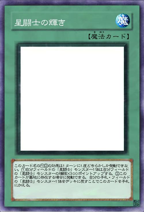 | このカード名の①②の効果は1ターンに1度どちらかしか発動できない。①自分フィールドの「星闘士」モンスター1体は自分フィールドの「星闘士」モンスターの種類×300ポイントアップする。②このカードが墓地に存在する場合に発動できる。自分の手札・フィールドの「星闘士」モンスター1体をデッキに戻すことでこのカードを手札に加える。 | |||