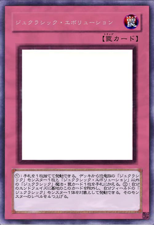 | ①:手札を1枚捨てて発動できる。デッキから恐竜族の「ジュクラシック」モンスター1枚と「ジュクラシック・エボリューション」以外の「ジュクラシック」魔法・罠カード1枚を手札に加える。②:自分のエンドフェイズに墓地のこのカードを除外し、自分フィールドの「ジュクラシック」モンスター1体を対象として発動できる。そのモンスターのレベルを4つ上げる。 | |||