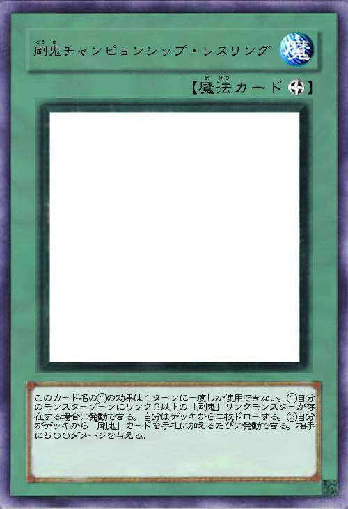 | このカード名の①の効果は1ターンに一度しか使用できない。①自分のモンスターゾーンにリンク3以上の「剛鬼」リンクモンスターが存在する場合に発動できる。自分はデッキから二枚ドローする。②自分がデッキから「剛鬼」カードを手札に加えるたびに発動できる。相手に500ダメージを与える。 | |||