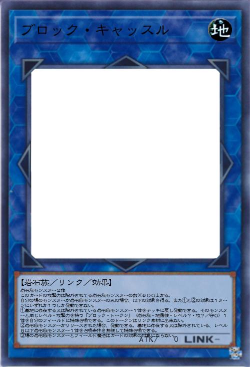 | 岩石族モンスター2体 このカードの攻撃力は除外されてる岩石族モンスターの数×500上がる。 自分の場のモンスターが岩石族モンスターのみの場合、以下の効果を得る。また①と②の効果は1ターンにいずれか1つしか発動できない。 ①墓地に存在する又は除外されている岩石族モンスター1体をデッキに戻し発動できる。そのモンスターと同じレベル・攻撃力を持つ「ブロック・トークン」(岩石族・地属性・レベル?・攻?/守0)1体を自分のフィールドに特殊召喚できる。このトークンはリンク素材に出来ない。 ②岩石族モンスターがリリースされた場合、発動できる。墓地に存在する又は除外されている、レベル8以下岩石族モンスター1体を召喚条件を無視して特殊召喚できる。 ③場の岩石族モンスターとフィールド魔法はカードの効果の対象にならない。 | |||