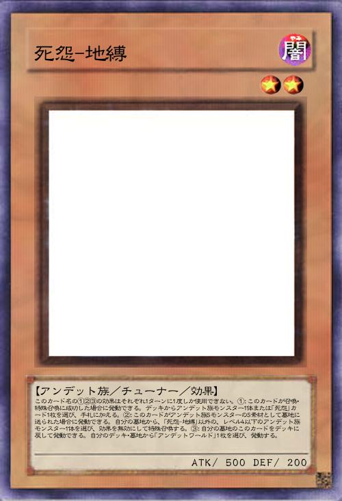 | このカード名の①②③の効果はそれぞれ1ターンに1度しか使用できない。①:このカードが召喚・特殊召喚に成功した場合に発動できる。デッキからアンデット族モンスター1体または「死怨」カード1枚を選び、手札に加える。②:このカードがアンデット族SモンスターのS素材として墓地に送られた場合に発動できる。自分の墓地から、「死怨-地縛」以外の、レベル4以下のアンデット族モンスター1体を選び、効果を無効にして特殊召喚する。③:自分の墓地のこのカードをデッキに戻して発動できる。自分のデッキ・墓地から「アンデットワールド」1枚を選び、発動する。 | |||