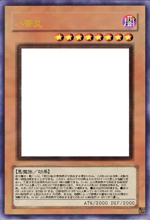 | 自分魔法・罠ゾ-ンに、「邪災畑」が表側表示で存在する場合にのみ、このモンスタ-は召喚・反転召喚・特殊召喚することができる。このカ-ド名の以下の効果はそれぞれ1タ-ンに1度しか発動できない。①自分または相手のメインフェイズ時に発動できる。フィ-ルド上に表側表示で存在する栽培カウンタ-が8つ以上乗っているモンスタ-1体を墓地に送り、手札からこのモンスタ-を特殊召喚する。その後、お互いのプレイヤ-は以下の効果から1つを選んで適用する。●自分は2000回復する。●自分のデッキからカ-ドを2枚ドロ-する。②栽培カウンタ-が8つ以上乗っているこのモンスタ-が、テキスト内に栽培カウンタ-と記されたカ-ドの効果、または、戦闘によって破壊され墓地に送られた場合に発動できる。フィ-ルド上に表側表示で存在する全てのモンスタ-に栽培カウンタ-を8つずつ置く。 | |||