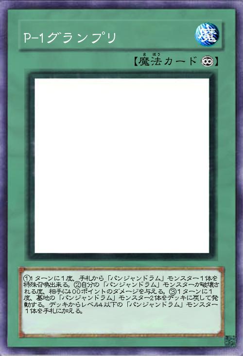 | ①1ターンに1度、手札から「パンジャンドラム」モンスター1体を特殊召喚出来る。②自分の「パンジャンドラム」モンスターが破壊される度、相手に400ポイントのダメージを与える。③1ターンに1度、墓地の「パンジャンドラム」モンスター2体をデッキに戻して発動する。デッキからレベル4以下の「パンジャンドラム」モンスター1体を手札に加える。 | |||