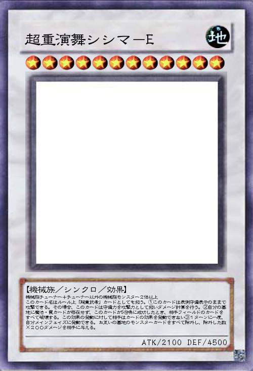 「獅子舞モチーフの超重武者シンクロモンスター。テツドウ-Oは素材に超重武者縛りがありますが、こちらは機械族縛りがある感じにしてあります。墓地に魔法・罠カードがない時にシンクロ召喚すると全体除去効果を発動し、墓地のモンスターを除外してバーンダメージを与えることができます。」(2019-07-24 21:02)