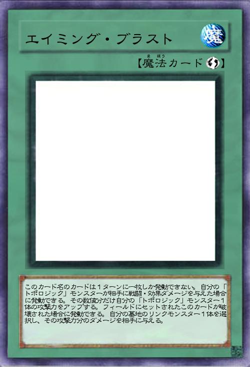 「トポロジック・ボマー・ドラゴンのバーン効果名をカードにしました。トポロジックモンスターを与えた戦闘・効果ダメージ分強化するカード。セットされてる時に破壊された場合は墓地のリンクモンスター1体の攻撃力分のバーンダメージを与えます。」(2019-07-28 11:56)