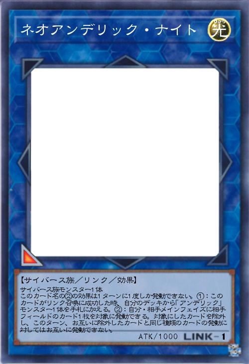 | サイバース族モンスター1体 このカード名の②の効果は1ターンに1度しか発動できない。①:このカードがリンク召喚に成功した時、自分のデッキから「アンデリック」モンスター1体を手札に加える。②:自分・相手メインフェイズに相手フィールドのカード1枚を対象に発動できる。対象にしたカードを除外し、このターン、お互いに除外したカードと同じ種類のカードの発動に対してはお互いに発動できない。 | |||