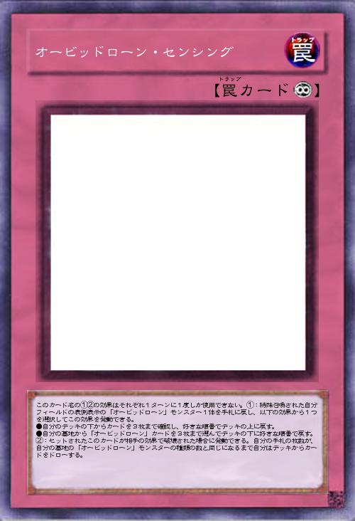 | このカード名の①②の効果はそれぞれ1ターンに1度しか使用できない。①:特殊召喚された自分フィールドの表側表示の「オービッドローン」モンスター1体を手札に戻し、以下の効果から1つを選択してこの効果を発動できる。 ●自分のデッキの下からカードを3枚まで確認し、好きな順番でデッキの上に戻す。 ●自分の墓地から「オービッドローン」カードを3枚まで選んでデッキの下に好きな順番で戻す。 ②:セットされたこのカードが相手の効果で破壊された場合に発動できる。自分の手札の枚数が、自分の墓地の「オービッドローン」モンスターの種類の数と同じになるまで自分はデッキからカードをドローする。 | |||