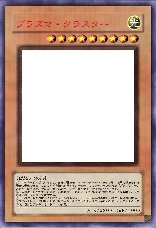 | ①:このカードが手札に存在し、自分の雷族モンスターがダメージステップ中に効果で破壊された場合に発動できる。このカードを特殊召喚する。その後、このターン破壊された「プラズマ」モンスター1体を選び、その同名モンスター1体を手札・デッキから特殊召喚できる。 ②:このカードが相手モンスターと戦闘を行ったダメージ計算後に発動できる。その戦闘を行ったお互いのモンスターを破壊する。 ③:このカードが墓地へ送られたターンのエンドフェイズ、自分の墓地のこのカード以外の雷族モンスター3体以上を対象として発動できる。そのモンスターをデッキに加えてシャッフルする。その後、自分はデッキから1枚ドローする。 | |||