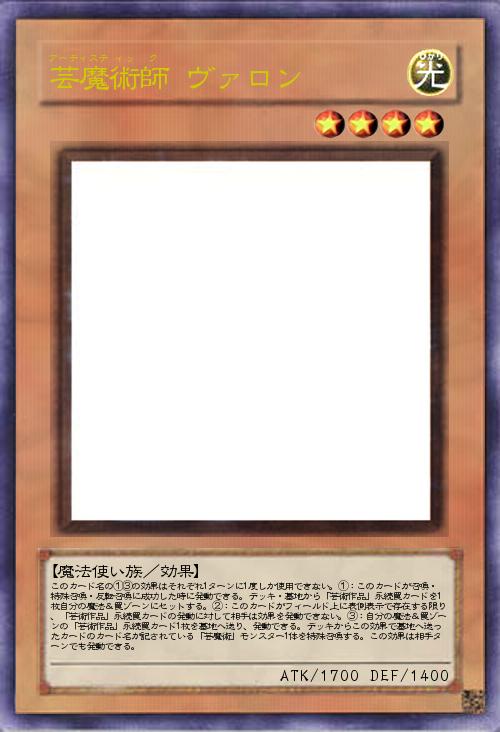 | このカード名の①③の効果はそれぞれ1ターンに1度しか使用できない。①:このカードが召喚・特殊召喚・反転召喚に成功した時に発動できる。デッキ・墓地から「芸術作品」永続罠カードを1枚自分の魔法&罠ゾーンにセットする。②:このカードがフィールド上に表側表示で存在する限り、「芸術作品」永続罠カードの発動に対して相手は効果を発動できない。③:自分の魔法&罠ゾーンの「芸術作品」永続罠カード1枚を墓地へ送り、発動できる。デッキからこの効果で墓地へ送ったカードのカード名が記されている「芸魔術」モンスター1体を特殊召喚する。この効果は相手ターンでも発動できる。 | |||