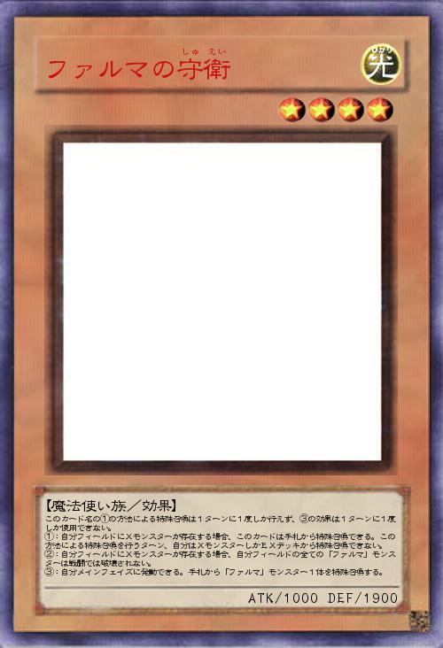 | このカード名の①の方法による特殊召喚は1ターンに1度しか行えず、③の効果は1ターンに1度しか使用できない。 ①:自分フィールドにXモンスターが存在する場合、このカードは手札から特殊召喚できる。この方法による特殊召喚を行うターン、自分はXモンスターしかEXデッキから特殊召喚できない。 ②:自分フィールドにXモンスターが存在する場合、自分フィールドの全ての「ファルマ」モンスターは戦闘では破壊されない。 ③:自分メインフェイズに発動できる。手札から「ファルマ」モンスター1体を特殊召喚する。 | |||