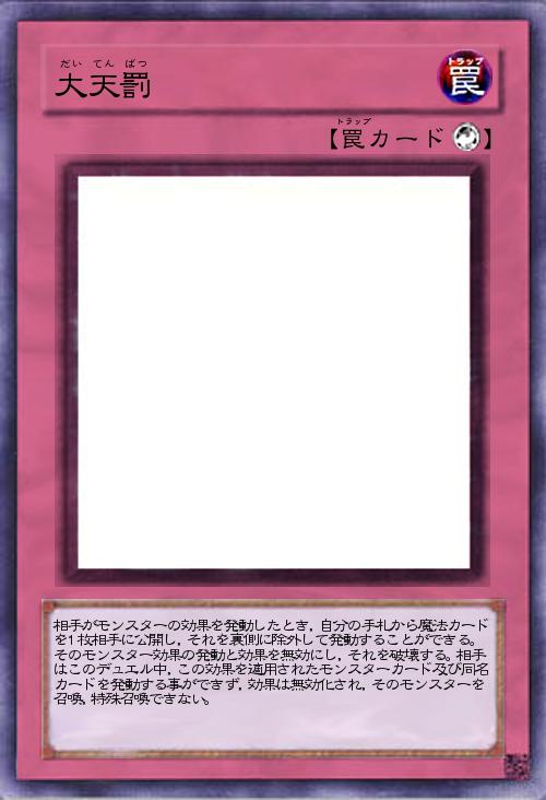 | 相手がモンスターの効果を発動したとき,自分の手札から魔法カードを1枚相手に公開し,それを裏側に除外して発動することができる。そのモンスター効果の発動と効果を無効にし,それを破壊する。相手はこのデュエル中,この効果を適用されたモンスターカード及び同名カードを発動する事ができず,効果は無効化され,そのモンスターを召喚,特殊召喚できない。 | |||