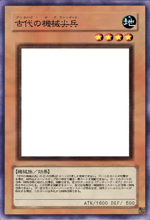 | 「古代の機械尖兵」の(2)の効果は1ターンに1度しか使用できない。(1):このカードが攻撃する場合、相手はダメージステップ終了時まで魔法・罠カードを発動できない。(2):このカードの召喚・特殊召喚に成功した場合、発動できる。自分のデッキから「アンティーク・ギア」カード1枚を手札に加える。この効果を発動するターン、自分は地属性・機械族モンスターしか召喚・特殊召喚できない。(3):自分モンスターゾーンにモンスターが存在せず、相手フィールドにカードが存在する場合、このカードは手札から特殊召喚できる。 | |||