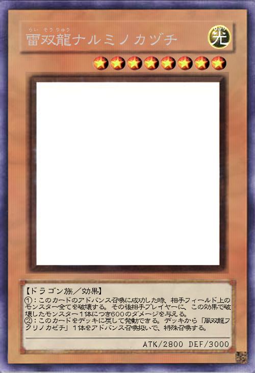 | ①:このカードのアドバンス召喚に成功した時、相手フィールド上のモンスター全てを破壊する。その後相手プレイヤーに、この効果で破壊したモンスター1体につき600のダメージを与える。 ②:このカードをデッキに戻して発動できる。デッキから「風双龍フクリノカゼチ」1体をアドバンス召喚扱いで、特殊召喚する。 | |||