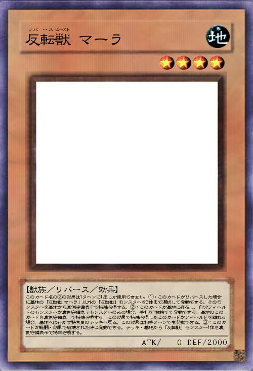 | このカード名の②の効果は1ターンに1度しか使用できない。①:このカードがリバースした場合に墓地の「反転獣 マーラ」以外の「反転獣」モンスターを3体まで選択して発動できる。そのモンスターを墓地から裏側守備表示で特殊召喚する。②:このカードが墓地に存在し、自分フィールドのモンスターが裏側守備表示モンスターのみの場合、手札を1枚捨てて発動できる。墓地のこのカードを裏側守備表示で特殊召喚する。この効果で特殊召喚したこのカードがフィールドを離れる場合、墓地へは行かず持ち主のデッキへ戻る。この効果は相手ターンでも発動できる。③:このカードが戦闘・効果で破壊された時に発動できる。デッキ・墓地から「反転獣」モンスター1体を裏側守備表示で特殊召喚する。 | |||