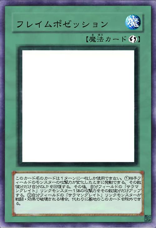 | このカード名のカードは1ターンに一枚しか使用できない。①相手フィールドのモンスターの攻撃力が変化したときに発動できる。その数値分だけ自分のLPを回復する。その後、自分フィールドの「サラマングレイト」リンクモンスター1体の攻撃力をその数値分だけアップする。②自分フィールドの「サラマングレイト」リンクモンスターが戦闘・効果で破壊される場合、代わりに墓地のこのカードを除外できる。 | |||