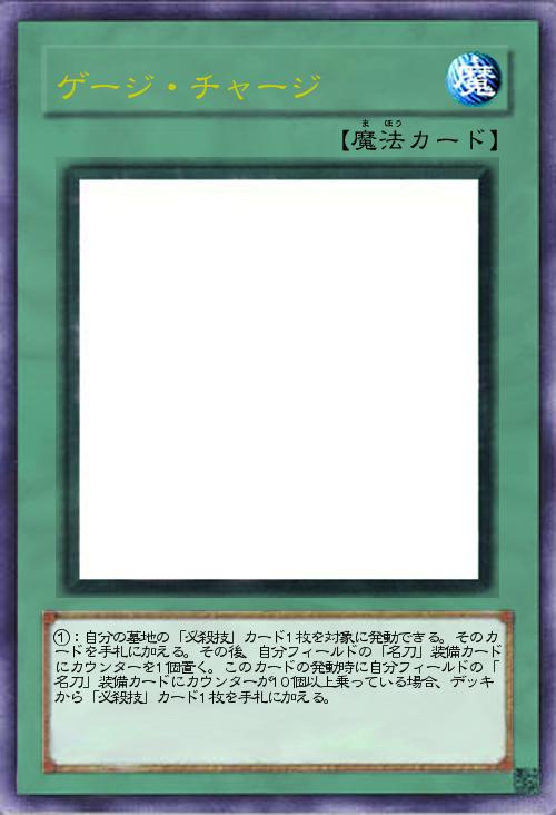 | ①:自分の墓地の「必殺技」カード1枚を対象に発動できる。そのカードを手札に加える。その後、自分フィールドの「名刀」装備カードにカウンターを1個置く。このカードの発動時に自分フィールドの「名刀」装備カードにカウンターが10個以上乗っている場合、デッキから「必殺技」カード1枚を手札に加える。 | |||