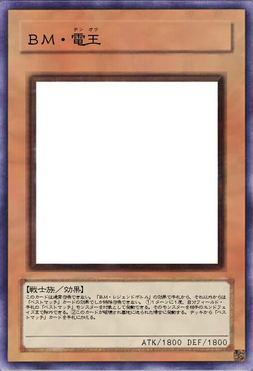 | このカードは通常召喚できない。「BM・レジェンドボトル」の効果で手札から、それ以外からは「ベストマッチ」カードの効果でしか特殊召喚できない。 ①1ターンに1度、自分フィールド・手札の「ベストマッチ」モンスターを対象として発動できる。そのモンスターを相手のエンドフェイズまで除外できる。②このカードが破壊され墓地に送られた場合に発動する。デッキから「ベストマッチ」カードを手札に加える。 | |||