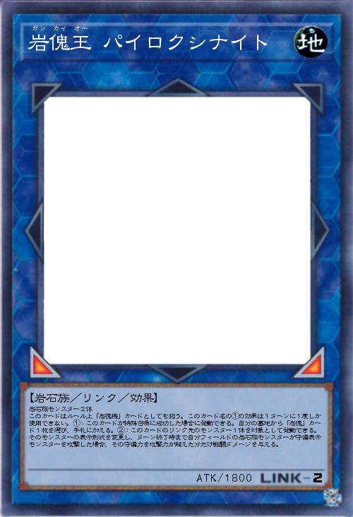 | 岩石族モンスター2体 このカードはルール上「岩傀機」カードとしても扱う。このカード名の①の効果は1ターンに1度しか使用できない。①:このカードが特殊召喚に成功した場合に発動できる。自分の墓地から「岩傀」カード1枚を選び、手札に加える。②:このカードのリンク先のモンスター1体を対象として発動できる。そのモンスターの表示形式を変更し、ターン終了時まで自分フィールドの岩石族モンスターが守備表示モンスターを攻撃した場合、その守備力を攻撃力が超えた分だけ戦闘ダメージを与える。 | |||