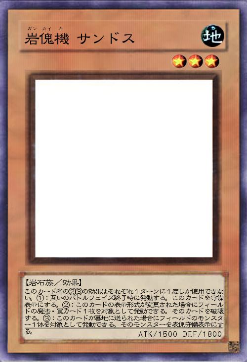 | このカード名の②③の効果はそれぞれ1ターンに1度しか使用できない。①:互いのバトルフェイズ終了時に発動する。このカードを守備表示にする。②:このカードの表示形式が変更された場合にフィールドの魔法・罠カード1枚を対象として発動できる。そのカードを破壊する。③:このカードが墓地に送られた場合にフィールドのモンスター1体を対象として発動できる。そのモンスターを表側守備表示にする。 | |||