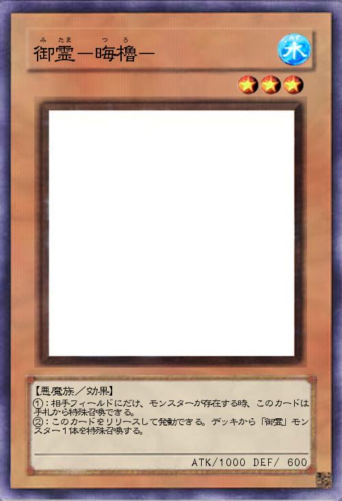 | ①:相手フィールドにだけ、モンスターが存在する時、このカードは手札から特殊召喚できる。 ②:このカードをリリースして発動できる。デッキから「御霊」モンスター1体を特殊召喚する。 | |||