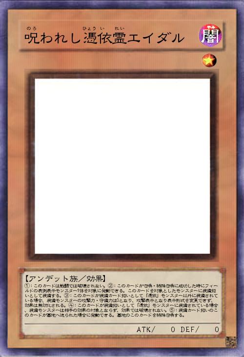 | ①:このカードは戦闘では破壊されない。②:このカードが召喚・特殊召喚に成功した時にフィールドの表側表示モンスター1体を対象に発動できる。このカードを対象としたモンスターに装備扱いとして装備する。③:このカードが装備カード扱いとして「憑依」モンスター以外に装備されている場合、装備モンスターの攻撃力・守備力は0となり、攻撃表示となり表示形式を変更できず、効果は無効化される。④:このカードが装備扱いとして「憑依」モンスターに装備されている場合、装備モンスターは相手の効果の対象とならず、効果では破壊されない。⑤:装備カード扱いのこのカードが墓地へ送られた場合に発動できる。墓地のこのカードを特殊召喚する。 | |||