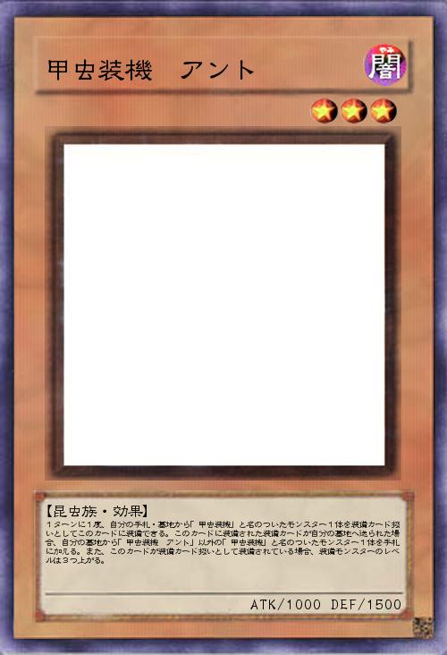| 1ターンに1度、自分の手札・墓地から「甲虫装機」と名のついたモンスター1体を装備カード扱いとしてこのカードに装備できる。このカードに装備された装備カードが自分の墓地へ送られた場合、自分の墓地から「甲虫装機 アント」以外の「甲虫装機」と名のついたモンスター1体を手札に加える。また、このカードが装備カード扱いとして装備されている場合、装備モンスターのレベルは3つ上がる。 | |||