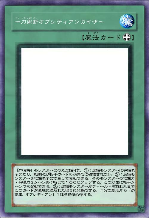 | 「岩傀機」モンスターにのみ装備可能。①:装備モンスターは守備表示になり、戦闘及び相手カードの効果では破壊されない。②:装備モンスターを攻撃表示に変更して発動できる。そのモンスターの攻撃力・守備力をターン終了時まで1000アップする。この効果は相手ターンでも発動できる。③:装備モンスターがフィールドを離れた事でこのカードが墓地に送られた場合に発動できる。自分の墓地から「岩傀王 オブシディアン」1体を特殊召喚する。 | |||