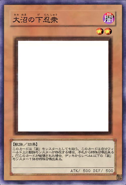 | このカードは「鼠」モンスターとしても扱う。このカードは自分フィールド上に獣族モンスターが存在する場合、手札から特殊召喚出来る。①このカードが破壊された場合、デッキからレベル4以下の「鼠」モンスター1体を特殊召喚出来る。 | |||