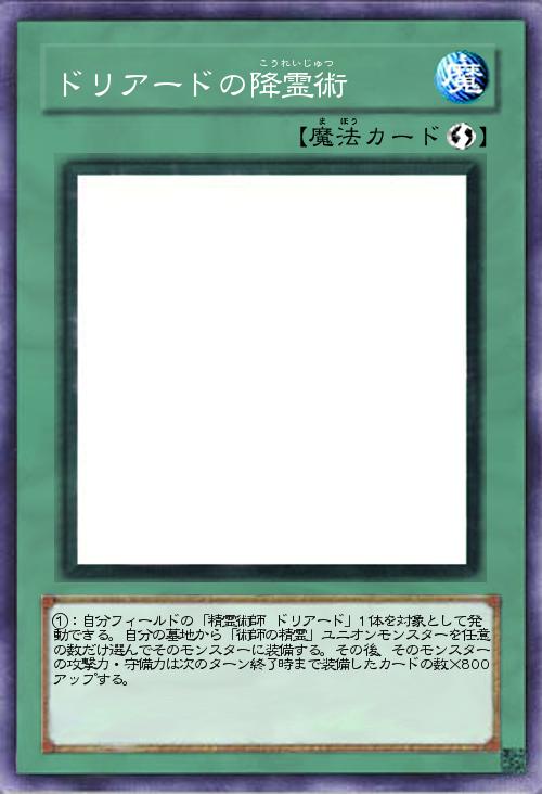 | ①:自分フィールドの「精霊術師 ドリアード」1体を対象として発動できる。自分の墓地から「術師の精霊」ユニオンモンスターを任意の数だけ選んでそのモンスターに装備する。その後、そのモンスターの攻撃力・守備力は次のターン終了時まで装備したカードの数×800アップする。 | |||