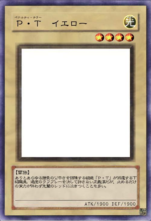 「サッカーのイエローカードより。ステータス合計が高いので攻撃守備を合計する類のカードがあれば充分強い。バニラなのはそっちの方がカード枠が黄色に近いから」(2019-09-21 12:53)