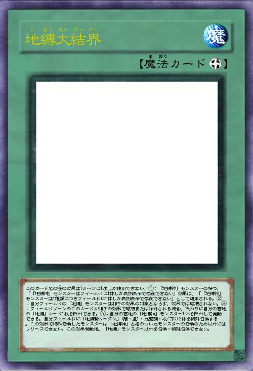 | このカード名の④の効果は1ターンに1度しか使用できない。①:「地縛神」モンスターの持つ、「「地縛神」モンスターはフィールドに1体しか表側表示で存在できない」効果は、「「地縛神」モンスターは1種類につきフィールドに1体しか表側表示で存在できない」として適用される。②:自分フィールドの「地縛」モンスターは相手の効果の対象とならず、効果では破壊されない。③:フィールドゾーンのこのカードが相手の効果で破壊または除外される場合、代わりに自分の墓地の「地縛」カード1枚を除外できる。④:自分の墓地の「地縛神」モンスター1体を除外して発動できる。自分フィールドに「地縛贄トークン」(闇・星1・悪魔族・攻/守0)2体を特殊召喚する。この効果で特殊召喚したモンスターは「地縛神」と名のついたモンスターの召喚のため以外にはリリースできない。この効果発動後、「地縛」モンスター以外を召喚・特殊召喚できない。 | |||