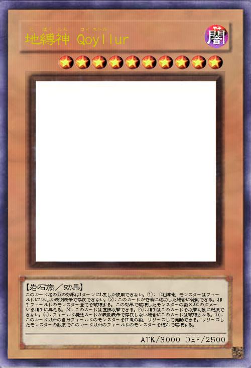 | このカード名の⑥の効果は1ターンに1度しか使用できない。①:「地縛神」モンスターはフィールドに1体しか表側表示で存在できない。②:このカードが召喚に成功した場合に発動できる。相手フィールドのモンスター全てを破壊する。この効果で破壊したモンスターの数×700のダメージを相手に与える。③:このカードは直接攻撃できる。④:相手はこのカードを攻撃対象に選択できない。⑤:フィールド魔法カードが表側表示で存在しない場合にこのカードは破壊される。⑥:このカード以外の自分フィールドのモンスターを任意の数、リリースして発動できる。リリースしたモンスターの数までこのカード以外のフィールドのモンスターを選んで破壊する。 | |||