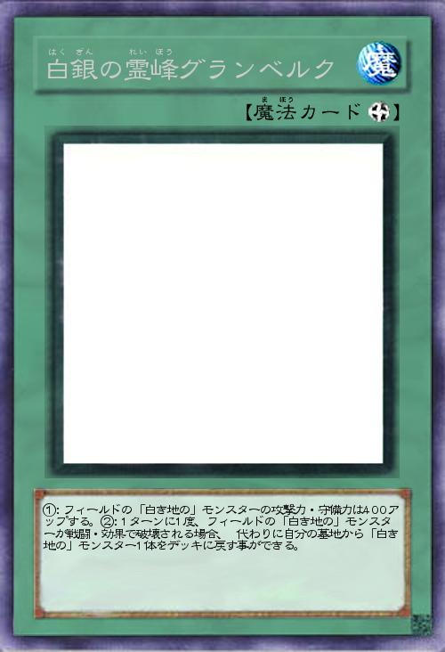 | ①:フィールドの「白き地の」モンスターの攻撃力・守備力は400アップする。②:1ターンに1度、フィールドの「白き地の」モンスターが戦闘・効果で破壊される場合、 代わりに自分の墓地から「白き地の」モンスター1体をデッキに戻す事ができる。 | |||