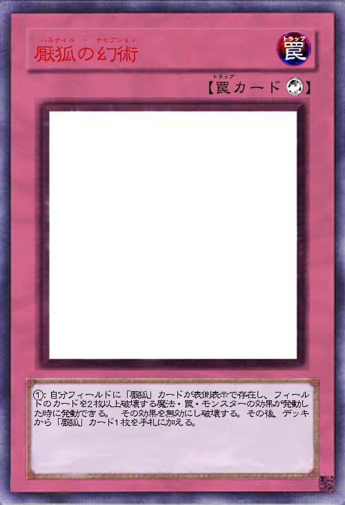 | ①:自分フィールドに「厭狐」カードが表側表示で存在し、フィールドのカードを2枚以上破壊する魔法・罠・モンスターの効果が発動した時に発動できる。 その効果を無効にし破壊する。その後、デッキから「厭狐」カード1枚を手札に加える。 | |||