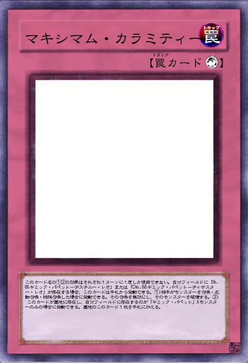 | このカード名の①②の効果はそれぞれ1ターンに1度しか使用できない。自分フィールドに「No.88ギミック・パペット-デステニー・レオ」または「CNo.88ギミック・パペット-ディザスター・レオ」が存在する場合、このカードは手札から発動できる。①:相手がモンスターを召喚・反転召喚・特殊召喚した場合に発動できる。その召喚を無効にし、そのモンスターを破壊する。②: このカードが墓地に存在し、自分フィールドに存在するのが「ギミック・パペット」Xモンスターのみの場合に発動できる。墓地のこのカード1枚を手札に加える。 | |||