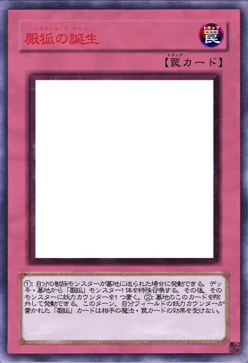 | ①:自分の獣族モンスターが墓地に送られた場合に発動できる。デッキ・墓地から「厭狐」モンスター1体を特殊召喚する。その後、そのモンスターに妖力カウンターを1つ置く。②:墓地のこのカードを除外して発動できる。このターン、自分フィールドの妖力カウンターが置かれた「厭狐」カードは相手の魔法・罠カードの効果を受けない。 | |||