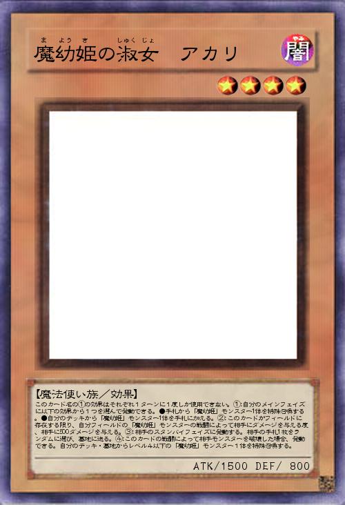 | このカード名の①の効果はそれぞれ1ターンに1度しか使用できない。①:自分のメインフェイズに以下の効果から1つを選んで発動できる。●手札から「魔幼姫」モンスター1体を特殊召喚する。●自分のデッキから「魔幼姫」モンスター1体を手札に加える。②:このカードがフィールドに存在する限り、自分フィールドの「魔幼姫」モンスターの戦闘によって相手にダメージを与える度、相手に500ダメージを与える。③:相手のスタンバイフェイズに発動する。相手の手札1枚をランダムに選び、墓地に送る。④:このカードの戦闘によって相手モンスターを破壊した場合、発動できる。自分のデッキ・墓地からレベル4以下の「魔幼姫」モンスター1体を特殊召喚する。 | |||