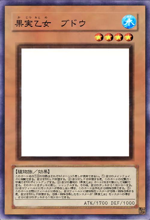| このカード名の①③の効果はそれぞれ1ターンに1度しか使用できない。①:自分のメインフェイズに発動できる。自分を500LP回復する。②:自分がLPを回復する度、このカードの攻撃力・守備力を100ポイントアップする。③:自分の墓地の「果実乙女」カード2枚を対象にして発動できる。そのカードをデッキに戻し、シャッフルする。その後、自分のデッキから1枚ドローする。④:自分フィールドにモンスターが存在しない場合、このカードは手札から特殊召喚できる。⑤:このカードが既にフィールドに存在し、自分フィールドに植物族モンスターが召喚・特殊召喚する度、自分を500LP回復する。召喚・特殊召喚したモンスターが「果実乙女」モンスターの場合、さらに自分のデッキから1枚ドローできる。 | |||