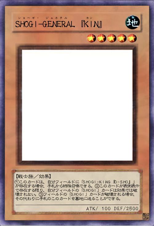 | ①このカードは、自分フィールドに「SHOGI-KING『O-SHO』」が存在する場合、手札から特殊召喚できる。②このカードが表側表示で存在する限り、自分フィールドの「SHOGI」カードは効果では破壊されない。③フィールドの「SHOGI」カードが破壊される場合、その代わりに手札のこのカードを墓地に送ることができる。 | |||