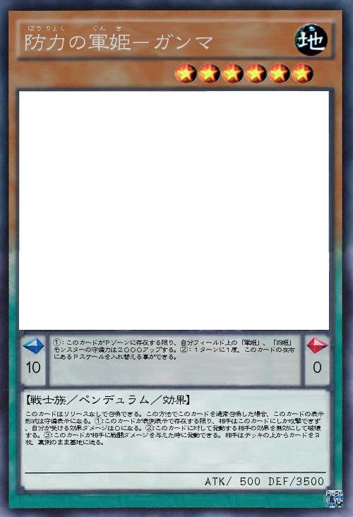 | ①:このカードがPゾーンに存在する限り、自分フィールド上の「軍姫」、「将姫」モンスターの守備力は2000アップする。②:1ターンに1度、このカードの左右にあるPスケールを入れ替える事ができる。 | |||