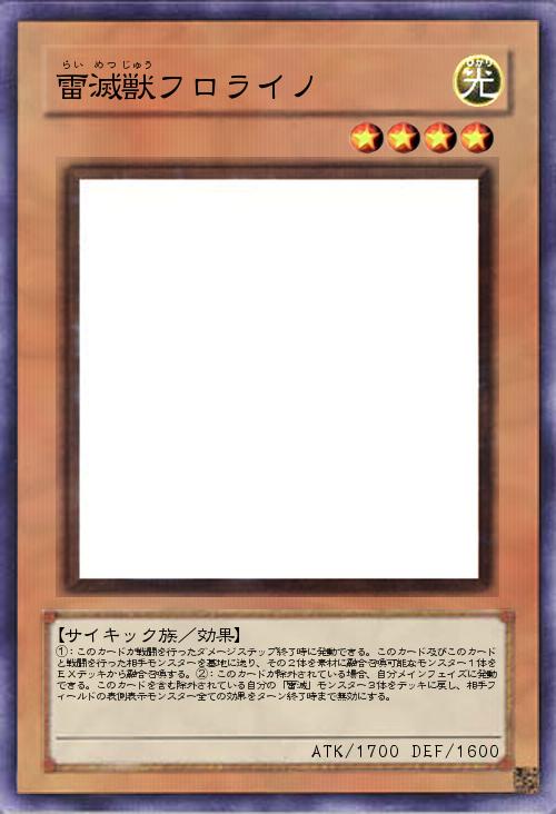 | ①:このカードが戦闘を行ったダメージステップ終了時に発動できる。このカード及びこのカードと戦闘を行った相手モンスターを墓地に送り、その2体を素材に融合召喚可能なモンスター1体をEXデッキから融合召喚する。②:このカードが除外されている場合、自分メインフェイズに発動できる。このカードを含む除外されている自分の「雷滅」モンスター3体をデッキに戻し、相手フィールドの表側表示モンスター全ての効果をターン終了時まで無効にする。 | |||