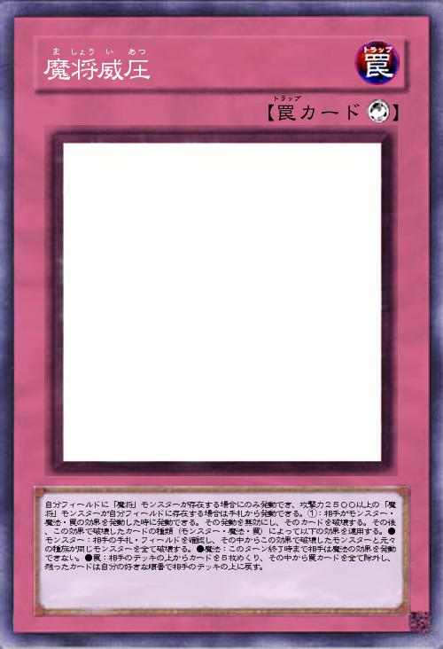 | 自分フィールドに「魔将」モンスターが存在する場合にのみ発動でき、攻撃力2500以上の「魔将」モンスターが自分フィールドに存在する場合は手札から発動できる。①:相手がモンスター・魔法・罠の効果を発動した時に発動できる。その発動を無効にし、そのカードを破壊する。その後、この効果で破壊したカードの種類(モンスター・魔法・罠)によって以下の効果を適用する。●モンスター:相手の手札・フィールドを確認し、その中からこの効果で破壊したモンスターと元々の種族が同じモンスターを全て破壊する。●魔法:このターン終了時まで相手は魔法の効果を発動できない。●罠:相手のデッキの上からカードを5枚めくり、その中から罠カードを全て除外し、残ったカードは自分の好きな順番で相手のデッキの上に戻す。 | |||