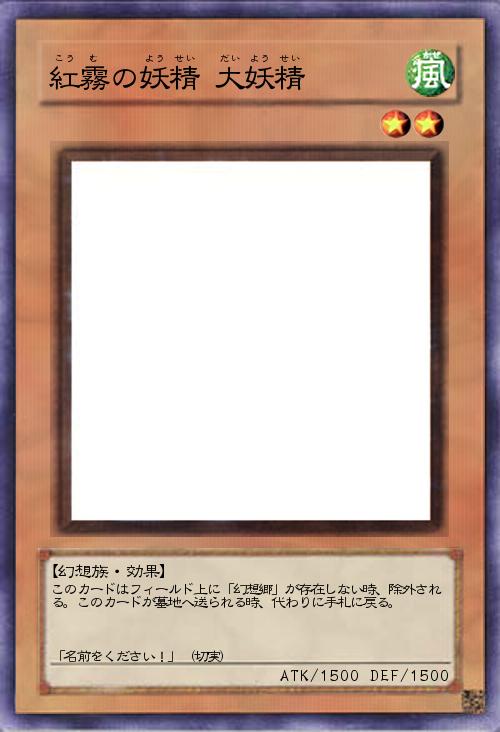このカードはフィールド上に「幻想郷」が存在しない時、除外される。このカードが墓地へ送られる時、代わりに手札に戻る。 「名前をください!」(切実) |